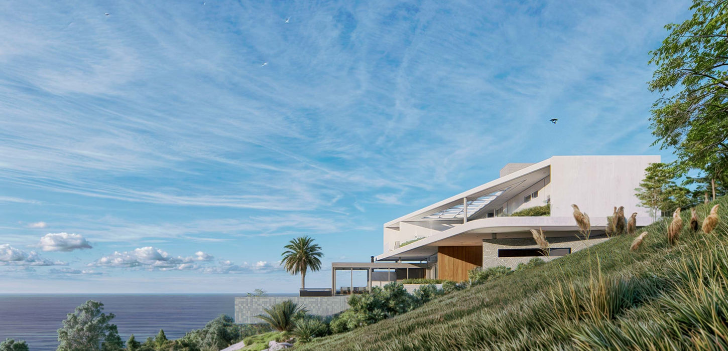 Este projeto foi desenvolvido para criar uma residência unifamiliar e um espaço comercial (café | bar) no mesmo terreno, que possui um declive de 8 metros. O desafio foi separar os fluxos e acessos das duas edificações, garantindo que ambas priorizassem a vista para a orla da praia de Governador Celso Ramos.